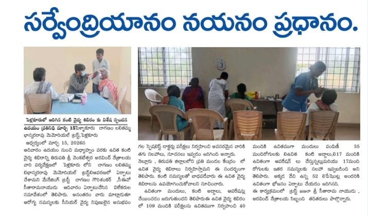 A free eye medical camp was successfully organized by the Chaganam Lalithamma Bhaskar Rao Memorial Trust in Sullurupeta. The camp was conducted under expert medical supervision, benefiting a large number of patients.